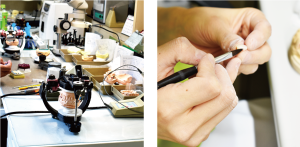 弊社では一人の技工士が責任をもってトリミングから完成までを担当しており歯科医院様のご要望に応えるべく日々技術の向上に努めております。